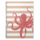 Cuaderno Pulpo rojo playa moderna arena blanca rayada