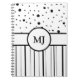 Cuaderno Puntos y franjas de polka blanco negro monogramado