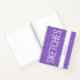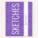 Cuaderno de sketchbook personalizado con estampado purpurina morado para el arte y el dibujo con un gran título de impresión de "Sketches by... y su nombre" impreso en la portada en un moderno tipo de letra sans serif.