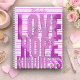 This inspirational spiral notebook has hand drawn marbled letters spelling out LOVE, HOPE, and KINDNESS on a pink-striped background. The name at the top is fully customizable, making it a perfect gift for students, teachers, or anyone who loves uplifting stationery.