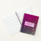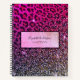 Un cuaderno elegante y femenino con colores gradientes en tonos rosa, violeta y negro de leopardo A con brillo. Un falso marco metálico de oro en el frente. Plantilla para su nombre, título o texto al frente. Cartas negras. El nombre está escrito con una escritura de estilo moderno y moderno con letras a mano. Perfecto para mujeres empresarias que quieren iluminar el espacio de trabajo, maquilladores, dueños de tiendas, consultores.