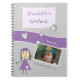Cuaderno Púrpura y gris con corazones, un nombre y una foto