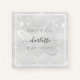 Un falso fondo metálico plateado, con una mariposa y un polvo falso purpurina, chispas. Personalice y agregue texto, nombre.