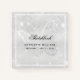 Un falso fondo metálico plateado, con una mariposa y un polvo falso purpurina, chispas. Personaliza y agrega texto, nombre .
