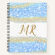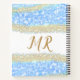 Cuaderno purpurina de oro azul chispa monograma texto