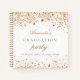Un fondo blanco y elegante con un polvo purpurina de oro oscuro. Personalice y agregue un nombre y la fecha. Se puede utilizar como libro de visitas o planear el fiesta.