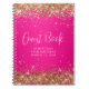 Crea tu propio libro de invitados de celebración de cumpleaños decorado con un bloc de notas en blanco para su día especial. Purpurina de oro falso con un fondo oscuro rosado brillante. Los falsos destellos y purpurinas son gráficos digitales que se imprimen como una foto. Personalizar el estilo, tamaño o color de la caligrafía del "Libro de invitados" para que coincida. Borra el gráfico degradado si prefiere un fondo de color sólido.