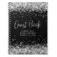 Crea tu propio libro de invitados de celebración de Dulce Dieciséis cumpleaños decorado con un bloc de notas en blanco para su día especial. Purpurina gris plateado falso sobre un fondo de color negro sólido personalizable. Los falsos destellos y purpurinas son gráficos digitales que se imprimen como una foto. Personalizar el estilo, tamaño o color de la caligrafía del "Libro de invitados" para que coincida.