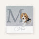 Elegante diseño de plata purpurinoso para los amantes del beagle. Esta pieza se centra alrededor de un monograma de plata y diseño con nombre junto a un lindo dibujo de cachorro de beagle para los amantes de los cachorros de beagle y los perros de beagle. El monocultivo inicial está en un texto elegante y sofisticado de color gris plateado oscuro, mientras que el nombre de abajo está escrito a mano en plata clara. Ambos son personalizables para que agregue su propio texto personalizado. Sobre la gran carta hay una foto de un perro cachorro adorable con un beagle, dibujada a mano por el personalizado. El beagle es tricolor y está sentado, con una pata avanzando. Esta pata apunta hacia el nombre. La hermosa cachorro y la letra beagle se ponen en el fondo de un purpurina brillante de plata. Este es un diseño encantador para una hermana beagle, hermano beagle, madre beagle, papá beagle, mejor amigo beagle, amante de las margas, Mamá de las margas y todo aquel que ame a los perros beagles.