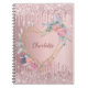 Cuaderno purpurina rosa Rubor monograma floral diariamente