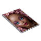 Una muñeca de bonito con maquillaje purpurina y flores rosas. Personaliza con una inicial.