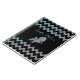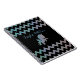 Adorable diseño de cuaderno de personalizable con una silueta de unicornio brillante sobre un fondo purpurinoso iridiscente negro y zigzag rayado. El texto es totalmente personalizable.