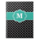 Cuaderno Quatrefoil negro y verde azulado Monoagram