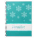 Brillante y divertido Let it Snow Holiday Notebook en turquesa con una cascada de copos de nieve dibujados a mano. Este divertido cuaderno sería perfecto para anotar durante las vacaciones y durante todo el invierno. Fácil de personalizar, simplemente añada el texto personalizado de su elección.
