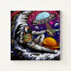 Arte vectorial original de un astronauta que tiene queso de luna y pasa una tajada a un alien. Creado en vector.