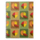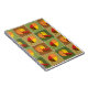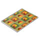 Cuatro cuadrados están decorados con hojas y calabazas en tonos caídos de rojo, naranja, amarillo y marrón. El punzonado blanco aporta un toque decorativo, dando a este patrón la apariencia de un edredón, creando un ambiente muy acogedor para el otoño.