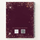 Para una elegante Quinceañera, 15 años. Un color de fondo burdeos de aspecto metálico. Decorada con rosa de oro falso polvo purpurina, una corona de tiara y un vestido. Personalice y agregue un nombre, edad y fecha. Quinceañera está escrita con un moderno guión de estilo escrito a mano con chispas. Se puede utilizar como libro de invitados o para planificar el fiesta.