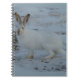 Cuaderno de raquetas de nieve. Esta fotografía muestra una liebre con raquetas de nieve en su abrigo blanco de invierno que es un camuflaje perfecto si hay nieve en el suelo, a veces los vientos de chinook derriten la nieve dejando a estas arenas bastante expuestas.