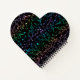 La música arcoiris señala un bloc de notas en espiral con forma de corazón personalizado. Coloridas notas musicales y patrones de arcos en azul verde, púrpura, rosa y dorado sobre negro o tu elección de color de fondo. Dale a tu nuevo bloc de notas un nombre para que sea tuyo. Estos cuadernos también hacen un gran regalo para tu músico o amante de la música favorito.