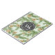 Hermosas ramas de pino acuarela y conos de pino nevando con una insignia de acuarela redonda y un monograma. Un bonito patrón de invierno acuático. Personalice cambiando el color de fondo, el texto o reemplazando el monograma por su propio logotipo.