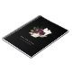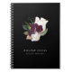 Elegante y moderno ramo floral en blanco marfil, púrpura ciruela, dorado y verde intenso, con libreta personalizada. La plantilla ofrece dos líneas para texto personalizado. El color de fondo, que se muestra en negro, se puede personalizar.