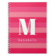 Cuaderno Raspberry Rayas rosas Personalizado Monograma Nomb