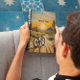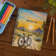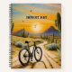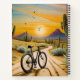 pintura al atardecer de una bicicleta en el desierto rodeada de cactus
