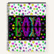 Whimsical Chica de Arte Folclórico Nombre estrellas de Raya y corazones morados, rosa, negro, lima verde bloc de notas.