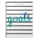 Cuaderno de moda personalizado de la raya negra de las metas de la acuarela. No pierda de vista sus metas con este cuaderno personalizado moderno y de moda. Pinceladas de la acuarela de azul y de verde en un fondo blanco y negro de la raya de la diversión. Personalice con su nombre en el top en un verde claro. Diario de organización elegante y moderno.