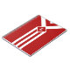 El elegante patrón geométrico presenta rayas blancas en negrita sobre un fondo rojo. Tres chevrones rojos y blancos alternantes terminan en un diamante rojo delineado con blanco. Parece una medalla estilizada colgando de una cinta. El diamante contiene un monograma de personalizable. Tres franjas blancas se extienden desde el lado opuesto del diamante hasta el borde del diseño. Los tercios exteriores del patrón son rojos. Imagen creada digitalmente. Copyright © 2014 Claire E. Skinner. Todos Los Derechos Reservados.