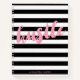 Cuaderno en espiral con el ajetreo escrito en un guión rosa chicle en negrita encima de rayas blancas y negras de moda. ¡Personaliza con tu nombre!