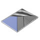 Sencillo diseño geométrico abstracto con rayas negras y blancas y una decoración triangular azul para todos los amantes del diseño simple, moderno y geométrico.