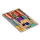 Esta imagen es tomada de la pintura de marca permanente de mi esposa Carolyn de rayas rectangulares calientes y frescas con un acento verde circular. Intenta personalizar esta opción cambiando el color de fondo con blanco como transparente y encuentra una combinación de colores que sea única. Después de retirarse de una distinguida carrera docente, Carolyn descubrió que crear arte abstracto le resultaba atractivo. El marcador permanente de color y el lápiz de color son sus medios favoritos.