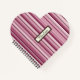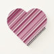 Un cuaderno de espiral único en forma de corazón con rayas verticales de malva rosa personalizadas. Perfecto para el diario, las notas o el regalo.