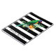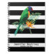 Rayas negras y blancas, loro colorido y flores naranjas con hojas verdes. plantilla de bloc de notas de personalizable