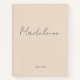 Relájese en el moderno ordenador portátil de cocina de cocina con caligrafía beige crema y su nombre, perfecto para planificar las comidas y seguir las recetas.