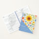 Cocina de campo, de granja. Un fondo azul. Decorado con motivos florales, girasol, flores azules y de coral. Añade tu propio texto en la columna vertebral.