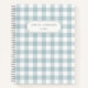 bloc de notas de receta diseñado por personalizados con nombre personalizado en un patrón de comprobación de búfalo azul suavemente polvoriento.