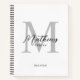 Cuaderno Receta moderna de Monograma Gris Blanco con guión