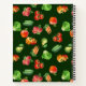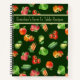 Frutas y verduras con el título de encuadernador de la receta sobre un fondo verde oscuro.