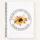 Un bonito girasol en un cuaderno con el logotipo de un círculo personalizado con su nombre en un clásico tipo de cara abierta.