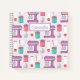 Mezclador malva y los ingredientes para la elaboración de tartas en un cuaderno de recetas personalizado con estampado de colores.