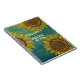 Elegante pintura acuarela de girasoles con textura rústica verde. Nombre a personalizar.