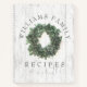 Reúne sus recetas favoritas para las vacaciones en este libro rústico de recetas inspirado en este país. El diseño es de madera blanca y gris. En el centro hay una corona de laurel con un nombre familiar escrito en curvo arriba y la palabra "recetas" debajo, que puede ser personalizada. Diseñado por el artista © Tim Coffey.
