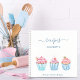 Un fondo blanco. Decorada con 3 pastelitos de color rosa y azul. Personaliza y agrega tu nombre y un título.
