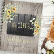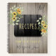 Un encantador organizador de recetas de granja rústica libro de cocina con madera vintage y ramos de girasoles dorados amarillos. ++++++++++ ¡Personalízalo con el monograma del chef, nombre y tu texto! +++++++++ Puede ser un libro de recetas personal moderno en blanco para tu cocina, un recetario familiar de abuela, o un regalo personalizado hermoso para una ducha de novia, boda o aniversario familiar.