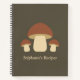 Un cuaderno de recetas marrones con un ilustracion de tres setas y texto de personalizable debajo! ¡Podría ser un regalo perfecto para un chef de cocina o pastelería, un micólogo o una verdura!