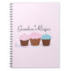 Un gran cuaderno para que la abuela saque sus recetas en... un suave fondo rosado con tres pastelitos de bonito con espolvorines y cintas de rizo.