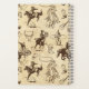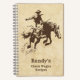 Este cuaderno de recetas de temática occidental presenta un vaquero rodeo montando un bronco en la parte delantera y un patrón de rodeo en la parte trasera. Personaliza esto para ti o para tu cocinera favorita del carro.