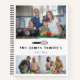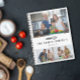 Libro de recetas familiar moderno personalizado con tres fotos y el nombre de tu familia bajo un tierno bigote de globo negro contra fondo blanco.